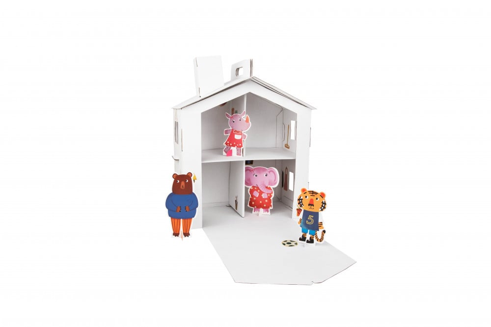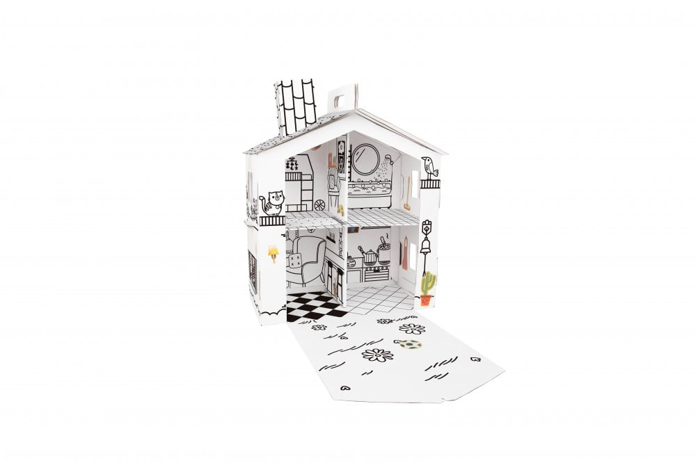 • يمكن للأطفال تلوين بيت الدمى بألوانهم المفضلة وبإبداع بلا حدود.