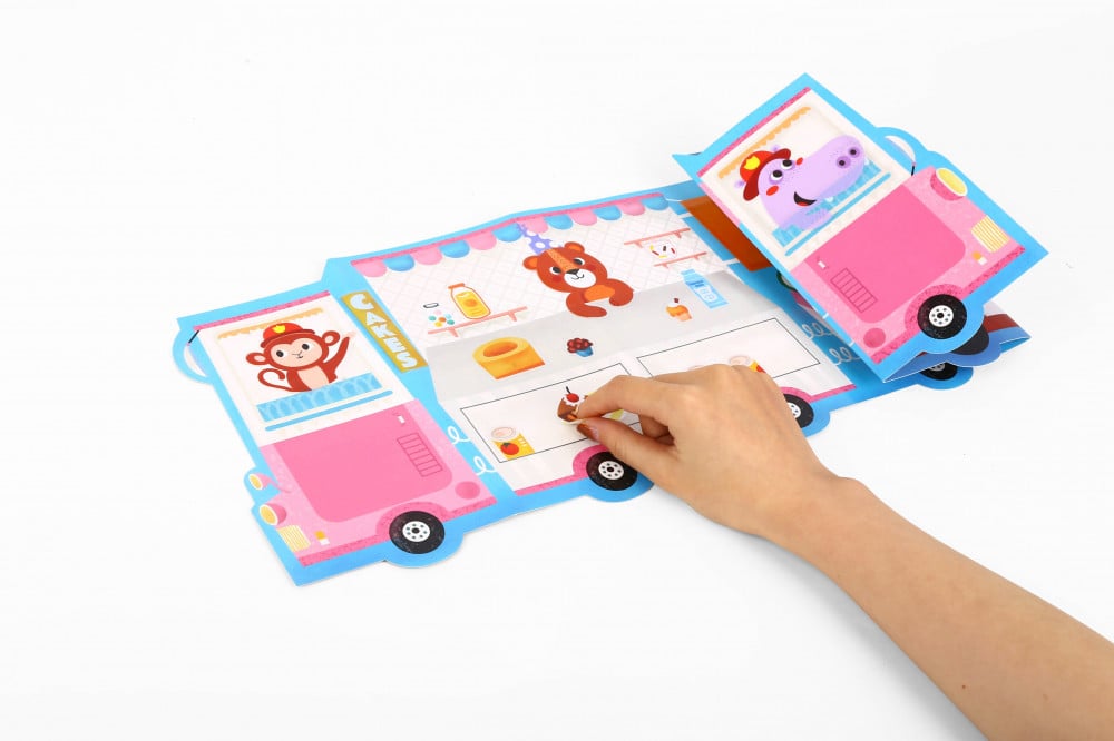 لوحة ألعاب ثلاثية الطي بوجهين، و4 أوراق ملصقات قابلة لإعادة الاستخدام.ملصقات قابلة للإزالة وسهلة التقشير واللصق للعب مرارًا وتكرارًا.العمرالموصى به : +3قياسات المنتج : 23x23.5x0.5cm